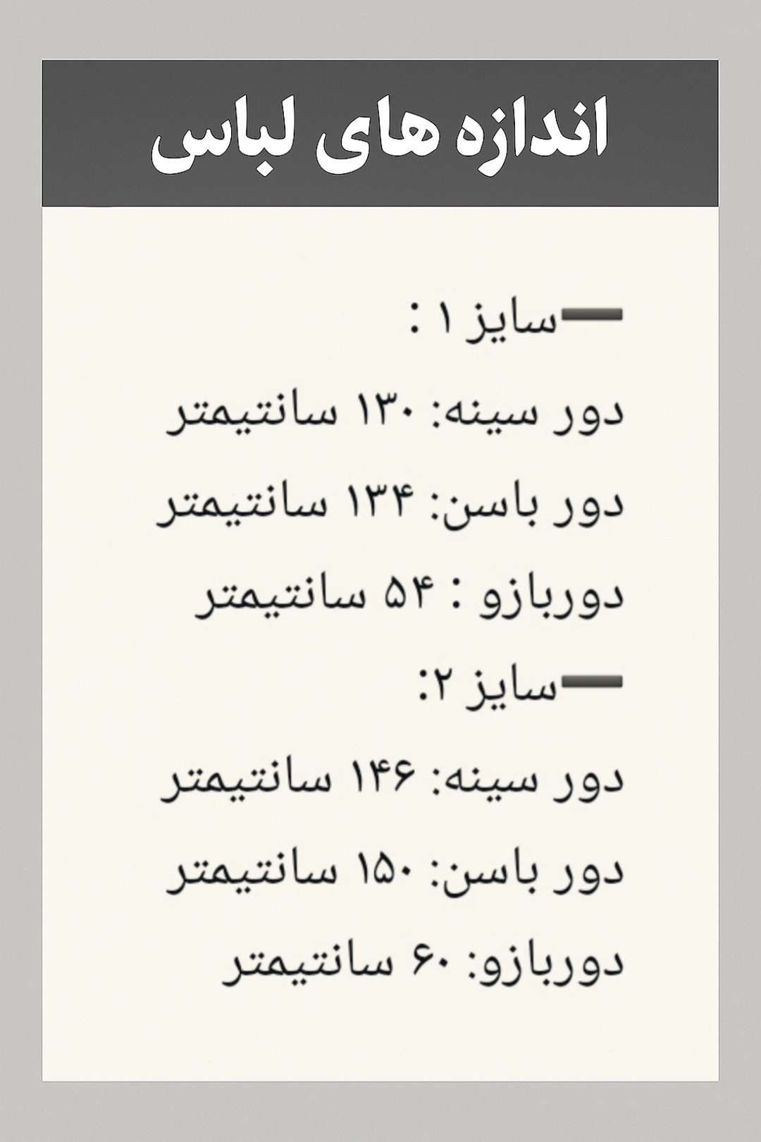 ◀️ قد آستین : ۶۰ سانتی متر